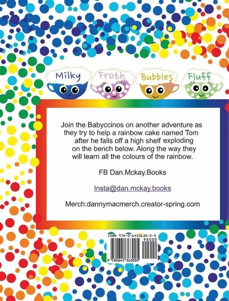 Tom the rainbow cake is having fun dancing on the shelf until he slips and falls off splattering on the bench. Join the Babyccinos as they collect pieces of Tom to help piece him back together and along the way learn all the colours of the rainbow.