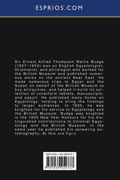 Sir Ernest Alfred Thompson Wallis Budge (1857-1934) was an English Egyptologist, Orientalist, and philologist who worked for the British Museum and published numerous works on the ancient Near East. He made numerous trips to Egypt and the Sudan on behalf of the British Museum to buy antiquities, and helped it build its collection of cuneiform tablets, manuscripts, and papyri. He published many books on Egyptology, helping to bring the findings to larger audiences. In 1920, he was knighted for his service to Egyptology and the British Museum. Budge was knighted in the 1920 New Year Honours for his distinguished contributions to Colonial Egyptology and the British Museum. In the same year he published his sprawling autobiography, By Nile and Tigris.