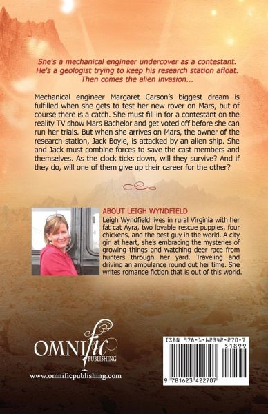 She's a mechanical engineer undercover as a contestant. He's a geologist trying to keep his research station afloat. Then comes the alien invasion... Mechanical engineer Margaret Carson's biggest dream is fulfilled when she gets to test her new rover on Mars, but of course there is a catch. She must fill in for a contestant on the reality TV show Mars Bachelor and get voted off before she can run her trials. But when she arrives on Mars, the owner of the research station, Jack Boyle, is attacked by an alien ship. She and Jack must combine forces to save the cast members and themselves. As the clock ticks down, will they survive? And if they do, will one of them give up their career for the other? The Bachelor on Mars will be the first book in The Bachelor Diaries series: The Bachelor on Mars, The Bachelor in Space, The Bachelor in Atlantis.