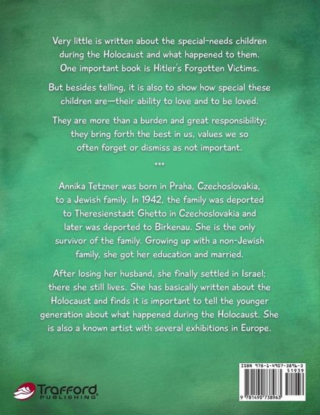 Very little is written about the special-needs children during the Holocaust and what happened to them. One important book is Hitler's Forgotten Victims. But besides telling, it is also to show how special these children are-their ability to love and to be loved. They are more than a burden and great responsibility; they bring forth the best in us, values we so often forget or dismiss as not important.
