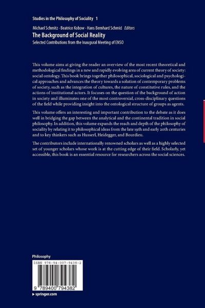 This volume aims at giving the reader an overview over the most recent theoretical and methodological findings in a new and rapidly evolving area of current theory of society: social ontology. This book brings together philosophical, sociological and psychological approaches and advances the theory towards a solution of contemporary problems of society, such as the integration of cultures, the nature of constitutive rules, and the actions of institutional actors. It focuses on the question of the background of action in society and illuminates one of the most controversial, cross-disciplinary questions of the field while providing insight into the ontological structure of groups as agents.