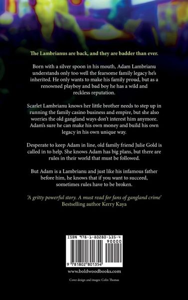 Pre-order the BRAND NEW story from Gillian Godden The Lambrianus are back, and they are badder than ever. Born with a silver spoon in his mouth, Adam Lambrianu understands only too well the fearsome family legacy he's inherited. He only wants to make his family proud, but as a renowned playboy and bad boy he has a wild and reckless reputation. Scarlet Lambrianu knows her little brother needs to step up in running the family casino business and empire, but she also worries the old gangland ways don't interest him anymore. Adam's sure he can make his own money and build his own legacy in his own unique way. Desperate to keep Adam in line, old family friend Julie Gold is called in to help. She knows Adam has big plans, but there are rules in their world that must be followed. But Adam is a Lambrianu and just like his infamous father before him, he knows that if you want to succeed, sometimes rules have to be broken. Praise for Gillian Godden: 'A gritty powerful story. A must read for fans of gangland crime' Bestselling author Kerry Kaya 'The characters were so real I'm still looking over my shoulder!' Bestselling author Owen Mullen 'Exciting, breathtaking and absolutely fantastic' ★★★★★ Reader Review 'If you are looking for a great gangland, family drama series these books are for you!' ★★★★★ Reader Review 'A fast and rivetting book that will keep you burning the midnight oil!! Highly recommended' ★★★★★ Reader Review