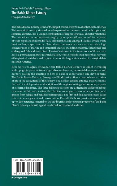 The Bahía Blanca Estuary is one of the largest coastal systems in Atlantic South America. This mesotidal estuary, situated in a sharp transition between humid subtropical and semiarid climates, has a unique combination of large interannual climatic variations. The estuarine area encompasses roughly 2300 square kilometers and is composed of wide expanses of intertidal flats, salt marshes, and emerged islands, which create intricate landscape patterns. Natural environments in the estuary sustain a high concentration of marine and terrestrial species, including endemic, threatened, and endangered fish and shorebirds. Puerto Cuatreros, in the inner zone of the estuary, hosts a permanent marine research station, whose records span more than 30 years of biophysical variables, and represent one of the largest time series of ecological data in South America. Beyond its ecological relevance, the Bahía Blanca Estuary is under increasing anthropogenic pressure from large urban settlements, industrial developments and harbors, raising the question of how to balance conservation and development. The Bahía Blanca Estuary: Ecology and Biodiversity offers a comprehensive review of life in the ecosystems of the estuary. The book is divided into five major sections, the first of which provides a description of the regional setting and covers key aspects of estuarine dynamics. The three following sections are dedicated to different habitat types and, within each section, the chapters are organized around major functional groups from pelagic and benthic environments. The fifth and final section covers issues related to management and conservation. Overall, the book provides essential and up-to-date reference material on the biodiversity and ecosystem processes of the Bahía Blanca Estuary, and will appeal to a broad international audience.