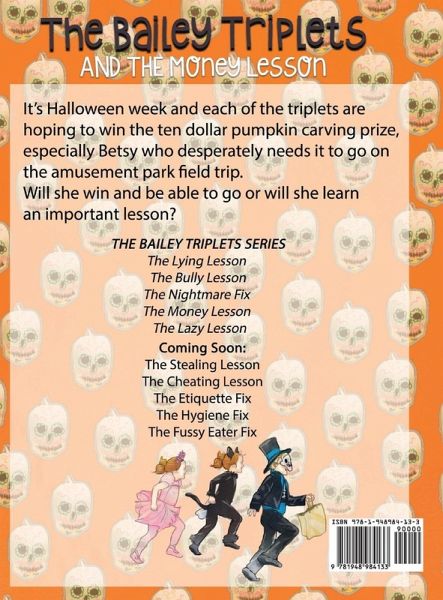 Every Halloween the Bailey triplets have a ten dollar pumpkin carving contest. Betty is a saver and always has money and Bobby always saves about a third, but Betsy spends all of her money almost as soon as it hits her hands, so she never has extra to spend. The amusement park field trip is right around the corner and if she doesn't have ten dollars to contribute, her mother won't let her go. She is desperate to win with her black cat pumpkin, hoping it will beat Bobby's mummy and Betty's princess pumpkin. When Halloween night comes, they dress in their costumes and take their treat bags to…mehr