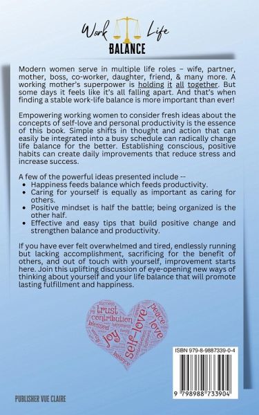 Working Mom = Superwoman! Modern women perform multiple life roles - wife, partner, mother, boss, co-worker, daughter, friend, and many more. Their lives revolve around family and career. A working mother's superpower is holding it all together. And most of the time we do a great job at it. However, do you feel there are some days that it's just all falling apart? That's when finding a stable work-life balance is more important than ever! Empowering working women of all ages with fresh ideas surrounding the concepts of self-love and personal productivity is the essence of The Balancing Act of A Busy Mom. Simple shifts that are easily integrated into an already busy life can radically change work-family life balance for the better. Build conscious, positive thought habits and intentional actions that create daily improvements. Reduce stress and increase success! A few of the powerful ideas presented include -- · Happiness feeds balance which feeds productivity. · Caring for yourself is equally as important as caring for others. · Positive mindset is half the battle; organized life is the other half. · Effective and easy tips that build positive change and strengthen balance and productivity. If you have ever felt... -- overwhelmed and tired, -- that you are running around but not accomplishing much (and always more to do), -- that you are sacrificing for the benefit of everyone else, and -- out of touch with yourself, ¿¿¿¿...join this uplifting discussion that shares eye-opening new ways of thinking, offers organizational tips to create balance and productivity, and reveals beliefs and attitudes that are critical to promote lasting fulfillment and happiness. You deserve it, Superwoman!