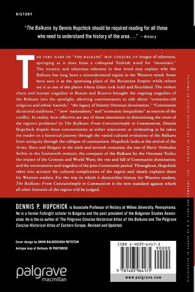 The tragedies of Bosnia and Kosovo are often explained away as the unchangeable legacy of 'centuries-old hatreds'. In this richly detailed, expertly balanced chronicle of the Balkans across fifteen centuries, Hupchick sets a complicated record straight. Organized around the three great civilizations of the region - Western European, Orthodox Christian and Muslim - this is a much-needed guide to the political, social, cultural and religious threads of Balkan history, with a clear, convincing account of the reasons for nationalist violence and terror.