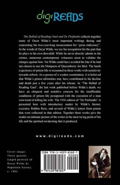 "The Ballad of Reading Gaol and De Profundis" collects together some of Oscar Wilde's most important writings during and concerning his two-year-long incarceration for "gross indecency". In the words of Oscar Wilde, we see his recognition for the part that he plays in his own downfall. While he never directly admits to his crimes, numerous contemporary witnesses seem to validate the charges against him. Yet Wilde could have avoided his fate if he had not chosen to sue the Marquess of Queensberry for libel. The harsh experience of prison life is recounted in these works with sensitivity towards reform. As a person of a weaker constitution, it is believed that Wilde's prison infirmities may have contributed to his decline and death just a few years after his release. In "The Ballad of Reading Gaol", the last work published before Wilde's death, we have an eloquent and sensitive concern for the insufferable conditions of prison life juxtaposed with the execution of a man convicted of killing his wife. The 1926 edition of "De Profundis" is presented here with introductory matter by Wilde's literary executor, Robbie Ross, and several of Wilde's letters from prison that were collected in that edition. Together these works give the reader an intimate picture of the writer at the most trying point of his life and the spiritual awakening that it produced. This edition is printed on premium acid-free paper.