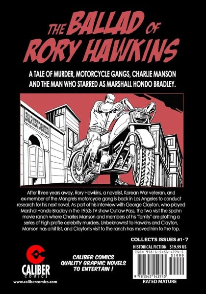For fans of ONCE UPON A TIME IN HOLLYWOOD! A tale of murder, motorcycle gangs, Charlie Manson, and the man who starred as Marshal Hondo Bradley. After three years away, Rory Hawkins, a novelist, Korean War veteran, and ex-member of the MONGRELS motorcycle gang is back in Los Angeles to conduct research for his next novel. As part of his interview with George Clayton, an actor who played Marshal Hondo Bradley in the 1950s TV show Outlaw Pass, the two visit the Spahn movie ranch where Charles Manson and members of his "family" are secretly plotting a series of high profile celebrity murders. Unbeknownst to Hawkins and Clayton, Manson has a hit list, and Clayton's visit to the ranch has moved him to the top of it. Though this graphic novel is fiction many of the characters are real, and the story is rooted in historical fact, specifically Manson's desire to target celebrities for violence and his infamous residence at the Spahn movie ranch. Also, this book takes place during a very specific historical timeline (Saturday, August 2 - Monday, August 11, 1969), and the events are intertwined with the Sharon Tate and LaBianca family murders that took place during those terrifying days. The book creators have meticulously researched the Manson murders and the book narrative has been developed in a way so that the events in the story can be historically plausible and a resolution is reached without contradicting the historical record that is known today. Collects the entire comic series issues 1-7.