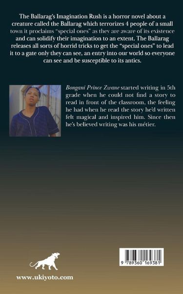 The Ballarag's Imagination Rush is a horror novel about a creature called the Ballarag which terrorizes 4 people of a small town it proclaims "special ones" as they are aware of its existence and can solidify their imagination to an extent. The Ballarag releases all sorts of horrid tricks to get the "special ones" to lead it to a gate only they can see, an entry into our world so everyone can see and be susceptible to its antics.