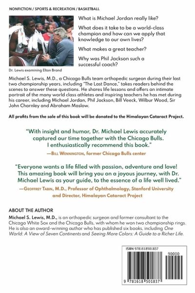 The Ball's in Your Court: A Doctor Shares Life Lessons from Michael Jordan, Phil Jackson, Abraham Maslowand other Inspiring Teachers What is Michael Jordan really like? What does it take to be a world-class champion and how can we apply that knowledge to our own lives? What makes a great teacher? Why was Phil Jackson such a successful coach? Michael S. Lewis, M.D., a Chicago Bulls orthopedic surgeon during their last two championship years, including "The Last Dance," takes readers behind the scenes to answer these questions. He shares life lessons and offers an intimate portrait of the many world-class athletes and inspiring teachers he has met during his career, including Michael Jordan, Phil Jackson, Bill Veeck, Wilbur Wood, Sir John Charnley and Abraham Maslow. All profits from the sale of this book will be donated by the author to the Himalayan Cataract Project. The first $10,000 will be matched dollar for dollar by reviewer Tom Broussard. "With insight and humor, Dr. Michael Lewis accurately captured our time together with the Chicago Bulls. I enthusiastically recommend this book." -- Bill Wennington, former Chicago Bulls center "Everyone wants a life filled with passion, adventure and love! This amazing book will bring you on a joyous journey, with Dr. Michael Lewis as your guide, to the essence of a life well lived." -- Geoffrey Tabin, M.D., Professor of Ophthalmology, Stanford University and Director, Himalayan Cataract Project About the Author: Michael S. Lewis, M.D., is an orthopedic surgeon and former consultant to the Chicago White Sox and the Chicago Bulls, with whom he won two championship rings. He is also an award-winning author who has published six books, including One World: A View of Seven Continents and Seeing More Colors: A Guide to a Richer Life.