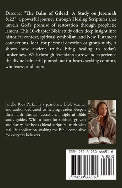 Discover "The Balm of Gilead: A Study on Jeremiah 8:22", a powerful journey through Healing Scriptures that unveils God's promise of restoration through prophetic lament. This 10-chapter Bible study offers deep insight into historical context, spiritual symbolism, and New Testament connections. Ideal for personal devotion or group study, it shows how ancient truths bring healing to today's brokenness. Walk through Jeremiah's sorrow and experience the divine balm still poured out for hearts seeking comfort, wholeness, and hope.