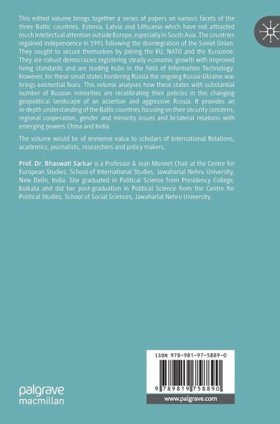 Chapter 1: Introduction.- Chapter 2: Impact of the Ukraine War on Security in the Baltic region.- Chapter 3: Small States in a Transforming World: The Baltic Response to the War in Ukraine.- Chapter 4: Ukraine and Beyond: Understanding the Foreign Policy of the Baltic States.- Chapter 5: The Baltic States as Members: Accord and Discord in the EU and NATO.- Chapter 6: Beyond Asymmetry: The Ukraine War and the Baltics' Role in Redefining EU-Russia Relations.- Chapter 7: Ukraine Crisis: Re-defining the Nordic-Baltic Security Outlook.- Chapter 8: Small States' Agency in Preserving Liberal International Order: The Case of Lithuania's Values-Based Foreign Policy towards the Indo-Pacific.- Chapter 9: The Baltics and China: Changing Equations.- Chapter 10: Regional identity at the critical juncture - how the Baltic Sea Region manages the punctuation of the post-Cold War equilibrium?.- Chapter 11: The Baltic Sea Region: Education, Research, Innovation and Training Policy in a Changing Europe.- Chapter 12: Changing Energy Dynamics in the Baltic Sea Region.- Chapter 13: India-Baltic Relations: From Reluctance to Evolving Engagement.- Chapter 14: India - Baltic Cultural Linkages.- Chapter 15: Gender Equality and Status of Women in the Baltics: A Work in Progress.- Chapter 16: The Lingering Question of Russian minorities in Baltic Nation-states.