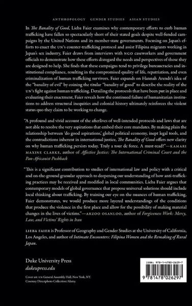 In The Banality of Good, Lieba Faier examines why contemporary efforts to curb human trafficking have fallen so spectacularly short of their stated goals despite well-funded campaigns by the United Nations and its member-state governments. Focusing on Japan's efforts to enact the UN's counter-trafficking protocol and assist Filipina migrants working in Japan's sex industry, Faier draws from interviews with NGO caseworkers and government officials to demonstrate how these efforts disregard the needs and perspectives of those they are designed to help. She finds that these campaigns tend to privilege bureaucracies and institutional compliance, resulting in the compromised quality of life, repatriation, and even criminalization of human trafficking survivors. Faier expands on Hannah Arendt's idea of the "banality of evil" by coining the titular "banality of good" to describe the reality of the UN's fight against human trafficking. Detailing the protocols that have been put in place and evaluating their enactment, Faier reveals how the continued failure of humanitarian institutions to address structural inequities and colonial history ultimately reinforces the violent status quo they claim to be working to change.