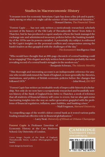 This history of the Bank of England takes its story from the 1950s to the end of the 1970s. This period probably saw the peak of the Bank's influence and prestige, as it dominated the financial landscape. One of the Bank's central functions was to manage the exchange rate. It was also responsible for administering all the controls that made up monetary policy. In the first part of the period, the Bank did all this with a remarkable degree of freedom. But economic policy was a failure, and sluggish output, banking instability and rampant inflation characterised the 1970s. The pegged exchange rate was discontinued, and the Bank's freedom of movement was severely constrained, as new approaches to policy were devised and implemented. The Bank lost much of its freedom of movement but also took on more formal supervision.