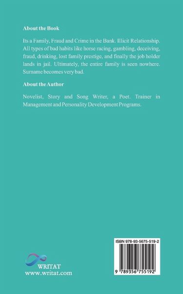 Its a Family, Fraud and Crime in the Bank. Illicit Relationship. All types of bad habits like horse racing, gambling, deceiving, fraud, drinking, lost family prestige, and finally the job holder lands in jail. Ultimately, the entire family is seen nowhere. Surname becomes very bad.