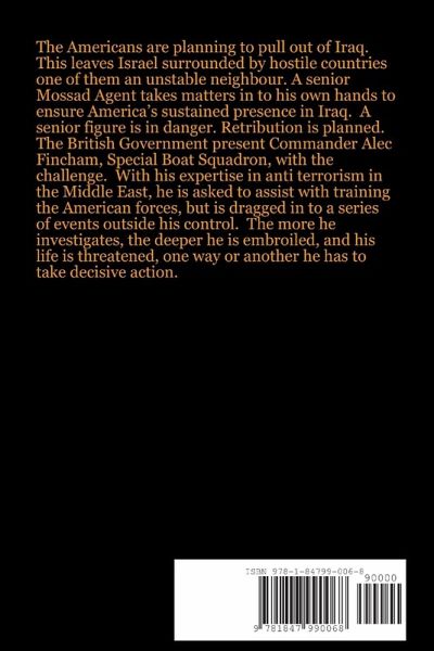 The Americans are planning to pull out of Iraq. This leaves Israel surrounded by hostile countries, one of them an unstable neighbour. A senior Mossad Agent takes matters in to his own hands to ensure America's sustained presence in Iraq. A senior figure is in danger. Retribution is planned. The British Government present Commander Alec Fincham, Special Boat Service, with the challenge. With his expertise in anti terrorism in the Middle East, he is asked to assist with training the American forces, but is dragged in to a series of events outside his control. The more he investigates, the deeper he is embroiled, and his life is threatened, one way or another he has to take decisive action.