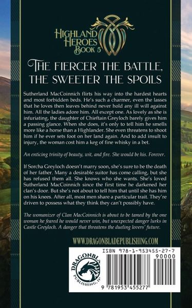 The fiercer the battle, the sweeter the spoils Sutherland MacCoinnich flirts his way into the hardest hearts and most forbidden beds. He's such a charmer, even the lasses that he loves then leaves behind never hold any ill will against him. All the ladies adore him. All except one. As lovely as she is infuriating, the daughter of Chieftain Greyloch barely gives him a passing glance. When she does, it's only to tell him he smells more like a horse than a Highlander. She even threatens to shoot him if he ever sets foot on her land again. And to add insult to injury, the woman cost him a keg of fine whisky in a bet. An enticing trinity of beauty, wit, and fire. She would be his. Forever. If Sorcha Greyloch doesn't marry soon, she's sure to be the death of her father. Many a desirable suitor has come calling, but she has refused them all. She knows who she wants. She's loved Sutherland MacCoinnich since the first time he darkened her clan's door. But she's not about to tell him that until she has him on his knees. After all, most men share a particular trait. They're driven to possess what they think they can't possibly have. The womanizer of Clan MacCoinnich is about to be tamed by the one woman he feared he would never win, but unexpected danger lurks in Castle Greyloch. A danger that threatens the dueling lovers' future. **If you love stirring tales of braw Highland warriors and the wily women who tame them, then this is the perfect novel for you! Passion, intrigue, and romance abound in this next installment of the Highland Heroes Series from bestselling author Maeve Greyson.