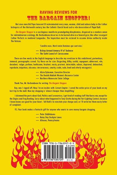Will President Trump be crowned as our first American monarch, or is he doomed to burn in Hell? Only The Bargain Shopper knows. Charles Rochambeau raves about his system for deep-discount shopping. Born into the 'wrong century,' he despises technology, computers, and internet shopping. He was cursed with 'bad timing' as his father squandered the family fortune on Wall Street. As a scion of the legendary French general who helped Washington defeat the British in The Revolutionary War, he has become a 'Certified Professional Shopper' in the service of an aristocratic divorcee, Beatrice Wolcott, whom like Charles, has endured a life of bad luck and tragedies. As Major Domo for her estate in Westchester County, Charles witnesses her close relationship with Ryan Keneally, the longtime family plumber, whose son, Trey reveals several shocking Wolcott family secrets. Charles suspects her friendship with Ryan seems much too close be platonic. Yet, Charles maintains his belief in 'The American Dream' and holds his ground as 'A Soldier of Truth' despite privation and adversity. He is dedicated to 'The Madame' and hopes to rectify the past, so they can both recover their lost dreams and proud family legacies. As Major Domo for her estate in Westchester County, Charles witnesses her close relationship with Ryan Keneally, the longtime family plumber, whose son, Trey reveals several shocking Wolcott family secrets. Charles suspects her friendship with Ryan seems much too close be platonic. Yet, Charles maintains his belief in 'The American Dream' and holds his ground as 'A Soldier of Truth' despite privation and adversity. He is dedicated to 'The Madame' and hopes to rectify the past, so they can both recover their lost dreams and proud family legacies. The Great Pandemic arrives and shuts down most of the shopping malls. God is dead. Like Ignatius Reilly in A Confederacy of Dunces, Charles realizes he is trapped in a corrupt modern world, over-run by duplicities, politics and lies. Has The American Dream become Paradise Lost? Is Charles crazy or has Le Monde simply gone mad? Like Dante's Inferno, The Bargain Shopper is an unexpurgated account of a Pilgrim's journey to Hell and back.