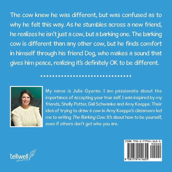 The cow knew he was different, but was confused as to why he felt this way. As he stumbles across a new friend, he realizes he isn't just a cow, but a barking one. The barking cow is different than any other cow, but he finds comfort in himself through his friend Dog, who makes a sound that gives him peace, realizing it's definitely OK to be different.