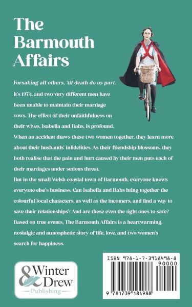Forsaking all others, 'til death do us part. It's 1974, and two very different men have not been able to uphold their marriage vows. The effect of their unfaithfulness on their wives, Isabella and Babs, is profound. When an accident draws these two women together, they learn more about their husbands' infidelities. As their friendship blossoms, they both realise that the pain and hurt caused by their men puts each of their marriages under serious threat. But in the small Welsh coastal town of Barmouth, everyone knows everyone else's business. Can Isabella and Babs bring together the colourful local characters as well as the incomers, to find a way to save their relationships? And are these even the right ones to save? Based on true events, The Barmouth Affairs is a heartwarming, nostalgic and atmospheric story of life, love, and two women's search for happiness.