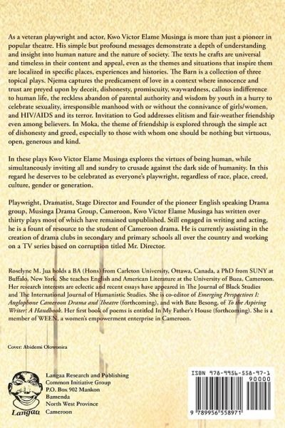 As a veteran playwright and actor, Kwo Victor Elame Musinga is more than just a pioneer in popular theatre. His simple but profound messages demonstrate a depth of understanding and insight into human nature and the nature of society. The texts he crafts are universal and timeless in their content and appeal, even as the themes and situations that inspire them are localized in specific places, experiences and histories. The Barn is a collection of three topical plays. Njema captures the predicament of love in a context where innocence and trust are preyed upon by deceit, dishonesty, promiscuity, waywardness, callous indifference to human life, the reckless abandon of parental authority and wisdom by youth in a hurry to celebrate sexuality, irresponsible manhood with or without the connivance of girls/women, and HIV/AIDS and its terror. Invitation to God addresses elitism and fair-weather friendship even among believers. In Moka, the theme of friendship is explored through the simple act of dishonesty and greed, especially to those with whom one should be nothing but virtuous, open, generous and kind. In these plays Kwo Victor Elame Musinga explores the virtues of being human, while simultaneously inviting all and sundry to crusade against the dark side of humanity. In this regard he deserves to be celebrated as everyone's playwright, regardless of race, place, creed, culture, gender or generation.