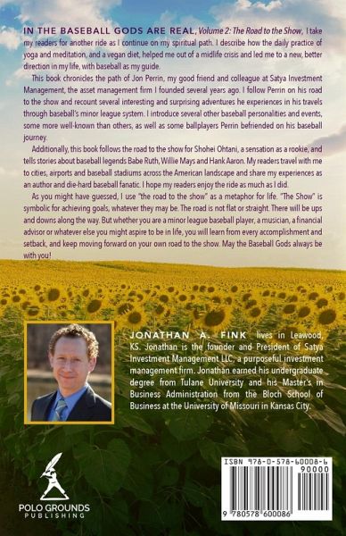 In the Baseball Gods are Real - Volume 2: The Road to the Show, I take my readers for another ride as I continue on my spiritual path. I describe how the daily practice of yoga and meditation, and a vegan diet, helped me out of a midlife crisis and led me to a new, better direction in my life, with baseball as my guide. This book chronicles the path of Jon Perrin, my good friend and colleague at Satya Investment Management, the asset management firm I founded several years ago. I follow Perrin on his road to the show and recount several interesting and surprising adventures he experiences in his travels through baseball's minor league system. I introduce several other baseball personalities and events, some more well-known than others, as well as some ballplayers Perrin befriended on his baseball journey. Additionally, this book follows the road to the show for Shohei Ohtani, a sensation as a rookie, and tells stories about baseball legends Babe Ruth, Willie Mays and Hank Aaron. My readers travel with me to cities, airports and baseball stadiums across the American landscape and share my experiences as an author and die-hard baseball fanatic. I hope my readers enjoy the ride as much as I did. As you might have guessed, I use "the road to the show" as a metaphor for life. "The Show" is symbolic for achieving goals, whatever they may be. The road is not flat or straight. There will be ups and downs along the way. But whether you are a minor league baseball player, a musician, a financial advisor or whatever else you might aspire to be in life, you will learn from every accomplishment and setback, and keep moving forward on your own road to the show. May the Baseball Gods always be with you!