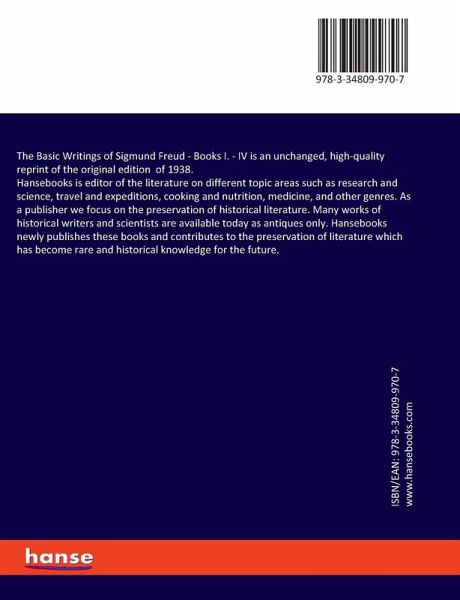 The Basic Writings of Sigmund Freud - Books I. - IV is an unchanged, high-quality reprint of the original edition of 1938.Hansebooks is editor of the literature on different topic areas such as research and science, travel and expeditions, cooking and nutrition, medicine, and other genres. As a publisher we focus on the preservation of historical literature. Many works of historical writers and scientists are available today as antiques only. Hansebooks newly publishes these books and contributes to the preservation of literature which has become rare and historical knowledge for the future.