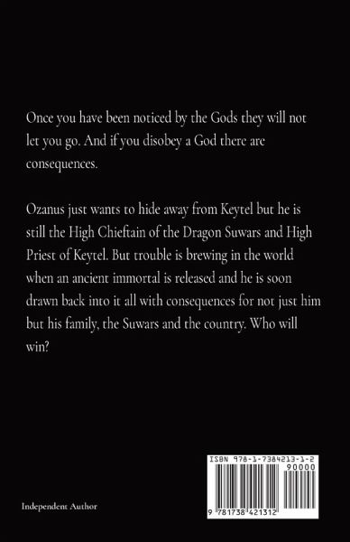 Once you have been noticed by the Gods they will not let you go. And if you disobey a God there are consequences. Ozanus just wants to hide away from Keytel but he is still the High Chieftain of the Dragon Suwars and High Priest of Keytel. But trouble is brewing in the world when an ancient immortal is released and he is soon drawn back into it all with consequences for not just him but his family, the Suwars and the country. Who will win?