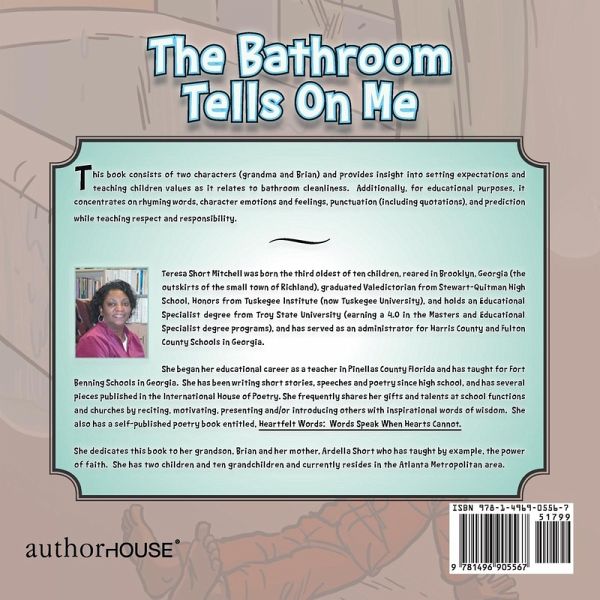 This book consists of two characters (grandma and Brian) and provides insight into setting expectations and teaching children values as it relates to bathroom cleanliness. Additionally, for educational purposes, it concentrates on rhyming words, character emotions and feelings, punctuation (including quotations), and prediction while teaching respect and responsibility.