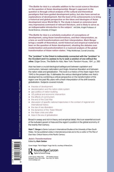Asia has been an ideological battleground between capitalism and communism, between nationalism and Westernization and between the nation-state and globalization. This book is a history of the Asian region from 1945 to the present day, which delineates the various ideological battles over Asia's development. Subjects covered include: * theories of development * decolonization * US political and economic intervention * the effects of communism * the end of the Cold War * the rise of neo-liberalism * Asia after the crisis * Asia in the era of globalization Broad in sweep and rich in theory and empirical detail, this is an essential account of the growth of 'Asian miracle' and its turbulent position in the global economy of the twenty-first century.