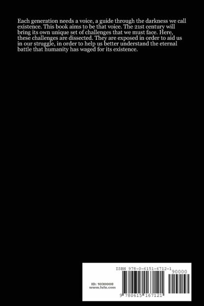 Trees, human beings, all of life is locked in a battle with entropy, with death and eventual chaos. Thus, I have aptly titled my book "The Battle for Existence." I trace the beginnings of the universe through history until the present day. I do not simply echo creation stories or slightly revise them. Rather, I try to give a fresh, new orignal answer to a question that has not been answered since man existed, namely: how did the universe form and even more importantly why did it form? I trace the battle though history, for history is nothing but the record of humanities biggest failures-as well as the source of its greatest inspiration to finally win the battle. This book is suitable for ages 14 and up.