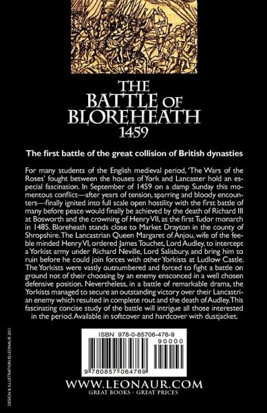 The first battle of the great collision of British dynasties For many students of the English medieval period, 'The Wars of the Roses' fought between the houses of York and Lancaster hold an especial fascination. In September of 1459 on a damp Sunday this momentous conflict-after years of tension, sparring and bloody encounters-finally ignited into full scale open hostility with the first battle of many before peace would finally be achieved by the death of Richard III at Bosworth and the crowning of Henry VII, as the first Tudor monarch in 1485. Bloreheath stands close to Market Drayton in the county of Shropshire. The Lancastrian Queen Margaret of Anjou, wife of the feeble minded Henry VI, ordered James Touchet, Lord Audley, to intercept a Yorkist army under Richard Neville, Lord Salisbury, and bring him to ruin before he could join forces with other Yorkists at Ludlow Castle. The Yorkists were vastly outnumbered and forced to fight a battle on ground not of their choosing by an enemy ensconced in a well chosen defensive position. Nevertheless, in a battle of remarkable drama, the Yorkists managed to secure an outstanding victory over their Lancastrian enemy which resulted in complete rout and the death of Audley. This fascinating concise study of the battle will intrigue all those interested in the period. Available in softcover and hardcover with dustjacket.