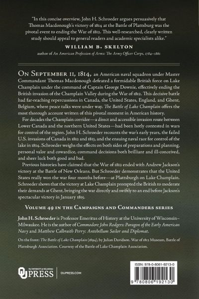 On September 11, 1814, an American naval squadron under Master Commandant Thomas Macdonough defeated a formidable British force on Lake Champlain under the command of Captain George Downie, effectively ending the British invasion of the Champlain Valley during the War of 1812. This decisive battle had far-reaching repercussions in Canada, the United States, England, and Ghent, Belgium, where peace talks were under way. Examining the naval and land campaign in strategic, political, and military terms, from planning to execution to outcome, The Battle of Lake Champlain offers the most thorough account written of this pivotal moment in American history. For decades the Champlain corridor-a direct and accessible invasion route between Lower Canada and the northern United States-had been hotly contested in wars for control of the region. In exploring the crucial issue of why it took two years for the United States and Britain to confront each other on Lake Champlain, historian John H. Schroeder recounts the war's early years, the failed U.S. invasions of Canada in 1812 and 1813, and the ensuing naval race for control of the lake in 1814. To explain how the Americans achieved their unexpected victory, Schroeder weighs the effects on both sides of preparations and planning, personal valor and cowardice, command decisions both brilliant and ill-conceived, and sheer luck both good and bad. Previous histories have claimed that the War of 1812 ended with Andrew Jackson's victory at the Battle of New Orleans. Schroeder demonstrates that the United States really won the war four months before-at Plattsburgh on Lake Champlain. Through a comprehensive analysis of politics and diplomacy, Schroeder shows that the victory at Lake Champlain prompted the British to moderate their demands at Ghent, bringing the war directly and swiftly to an end before Jackson's spectacular victory in January 1815.