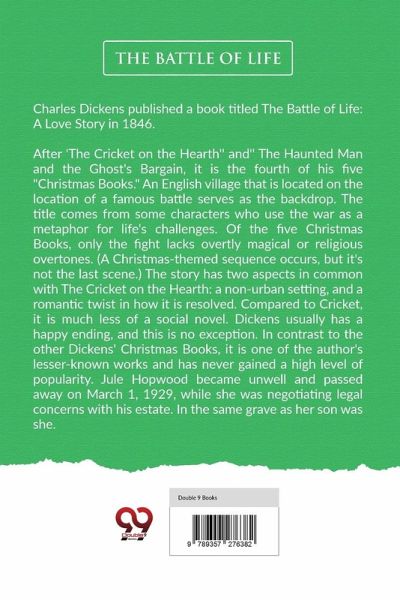 Charles Dickens published a book titled The Battle of Life: A Love Story in 1846. After 'The Cricket on the Hearth'' and'' The Haunted Man and the Ghost's Bargain, it is the fourth of his five "Christmas Books." An English village that is located on the location of a famous battle serves as the backdrop. The title comes from some characters who use the war as a metaphor for life's challenges. Of the five Christmas Books, only the fight lacks overtly magical or religious overtones. (A Christmas-themed sequence occurs, but it's not the last scene.) The story has two aspects in common with The…mehr