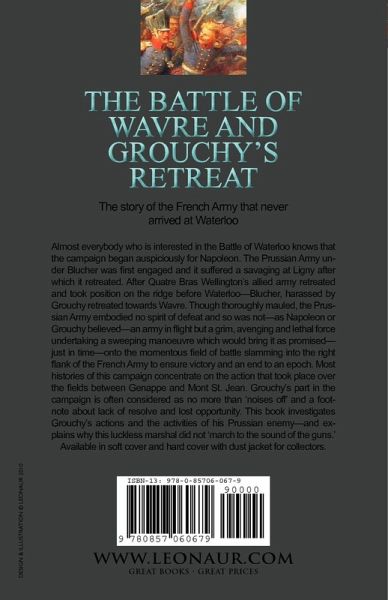 The story of the French Army that never arrived at Waterloo Almost everybody who is interested in the Battle of Waterloo knows that the campaign began auspiciously for Napoleon. The Prussian Army under Blucher was first engaged and it suffered a savaging at Ligny after which it retreated. After Quatre Bras Wellington's allied army retreated and took position on the ridge before Waterloo-Blucher, harassed by Grouchy retreated towards Wavre. Though thoroughly mauled, the Prussian Army embodied no spirit of defeat and so was not-as Napoleon or Grouchy believed-an army in flight but a grim, avenging and lethal force undertaking a sweeping manoeuvre which would bring it as promised-just in time-onto the momentous field of battle slamming into the right flank of the French Army to ensure victory and an end to an epoch. Most histories of this campaign concentrate on the action that took place over the fields between Genappe and Mont St. Jean. Grouchy's part in the campaign is often considered as no more than 'noises off' and a footnote about lack of resolve and lost opportunity. This book investigates Grouchy's actions and the activities of his Prussian enemy-and explains why this luckless marshal did not 'march to the sound of the guns.' Available in soft cover and hard cover with dust jacket for collectors.
