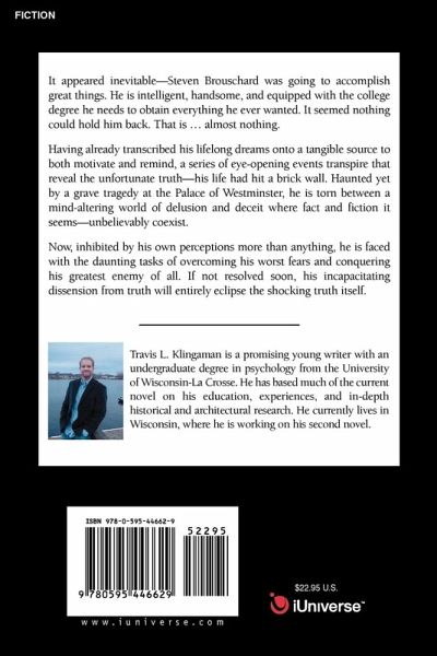 It appeared inevitable-Steven Brouschard was going to accomplish great things. He is intelligent, handsome, and equipped with the college degree he needs to obtain everything he ever wanted. It seemed nothing could hold him back. That is . almost nothing. Having already transcribed his lifelong dreams onto a tangible source to both motivate and remind, a series of eye-opening events transpire that reveal the unfortunate truth-his life had hit a brick wall. Haunted yet by a grave tragedy at the Palace of Westminster, he is torn between a mind-altering world of delusion and deceit where fact and fiction it seems-unbelievably coexist. Now, inhibited by his own perceptions more than anything, he is faced with the daunting tasks of overcoming his worst fears and conquering his greatest enemy of all. If not resolved soon, his incapacitating dissension from truth will entirely eclipse the shocking truth itself.
