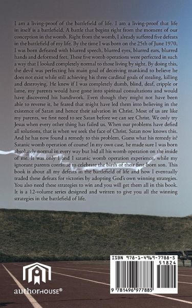 I am a living-proof of the battlefield of life. I am a living-proof that life in itself is a battlefield. A battle that begins right from the moment of our conception in the womb. Right from the womb, I already suffered five defeats in the battlefield of my life. By the time I was born on the 25th of June 1970, I was born defeated with blurred speech, blurred eyes, blurred ears, blurred hands and deformed feet. These five womb operations were perfected in such a way that I looked completely normal to those living by sight. By doing this, the devil was perfecting his main goal of deceiving mankind to believe he does not exist while still achieving his three cardinal goals of stealing, killing and destroying. He knew if I was completely dumb, blind, deaf, cripple or lame, my parents would have gone into spiritual consultations and would have discovered his handiwork. Even though they might not have been able to reverse it, he feared that might have led them into believing in the existence of Satan and hence their salvation in Christ. Most of us are like my parents, we first need to see Satan before we can see Christ. We only try Jesus when every other thing has failed us. When our problems have defied all solutions, that is when we seek the face of Christ. Satan now knows this. And he has now found a remedy to this problem. Guess what his remedy is? Satanic womb operation of course! In my own case, he made sure I was born absolutely normal in every way but hid all his womb operation on the inside of me. It was only I and I satanic womb operation experience, while my ignorant parents continue to celebrate the birth of their first-born son. This book is about all my defeats in the battlefield of life and how I eventually traded these defeats for victories by adopting God's own winning strategies. You also need these strategies to win and you will get them all in this book. It is a 12-volume series designed and written to give you all the winning strategies in the battlefield of life.