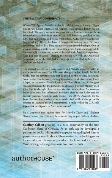 ABOUT THE BOOK - THE BAZATOV CONSPIRACY When CIA Agent, Melville Zadev boarded Gateway Airways Flight 189 at Abu Dhabi International Airport, Thanksgiving dinner was on his mind. The many overseas assignments left him in a state of sheer exhaustion - another three months, and he'll be saying goodbye to the CIA. But by a strange and ironic twist of fate, Zadev learnt even before he landed at JFK that his blissful thoughts of retiring, were far from becoming a reality. Two Jihadists had commandeered the flight. One of them is holding a knife to the throat of a senior flight attendant, while his accomplice spews out a slew of hateful anti- American expletives. They had one objective - blasting the Boeing 777 with 283 American passengers out of the sky! Zadev teams up with an off duty Marine to confront the hijackers! The accolades came from every quarter, and Melville Zadev is hailed as a true American hero. The CIA man thought he had fought his final battle. But the terrorists were not daunted by the botched hijacking. Soon, Zadev hits the road, tracking a shadowy and elusive enemy! From Allepo, to the exotic French Riviera and Ramadi in Iraq, Zadev goes on a ruthless hunt for the jihadists. In Moscow, a former Military man joins him in the fight; but the terrorists had other ideas. An assassin's bullet takes out a key informant, moments after he met Zadev and his Russian partner. America's arch enemy - the MAKI Network, led by Jatan Bazatov, has another score to settle. And while Zadev plans his strategy to liquidate the evil masterminds, a mole within the CIA, sells top secret intelligence to America's enemies! It's a desperate race against time for Melville Zadev and Vladimir Slavancovic, as they try to stop Bazatov and his group of barbaric jihadists.
