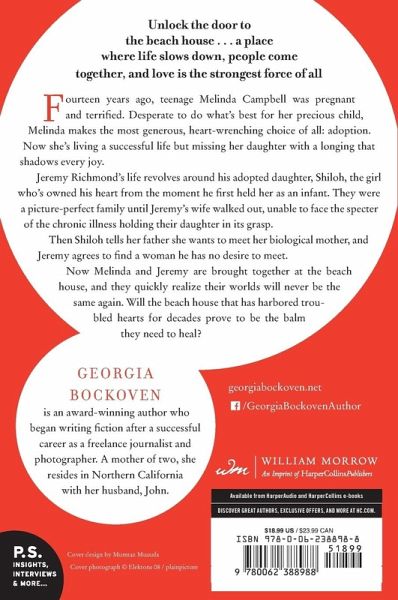 Unlock the door to the beach house . . . a place where life slows down, people come together, and love is the strongest force of all. Fourteen years ago, teenage Melinda Campbell was pregnant and terrified. Desperate to do what’s best for her precious child, Melinda makes the most generous, heart-wrenching choice of all: adoption. Now she’s living a successful life but missing her daughter with a longing that shadows every joy. Jeremy Richmond’s life revolves around his adopted daughter, Shiloh, the girl who’s owned his heart from the moment he first held her as an infant. They were a picture-perfect family until Jeremy’s wife walked out, unable to face the specter of the chronic illness holding their daughter in its grasp. Then Shiloh tells her father she wants to meet her biological mother, and Jeremy agrees to find a woman he has no desire to meet. Now Melinda and Jeremy are brought together at the beach house, and they quickly realize their worlds will never be the same again. Will the beach house that has harbored troubled hearts for decades prove to be the balm they need to heal?