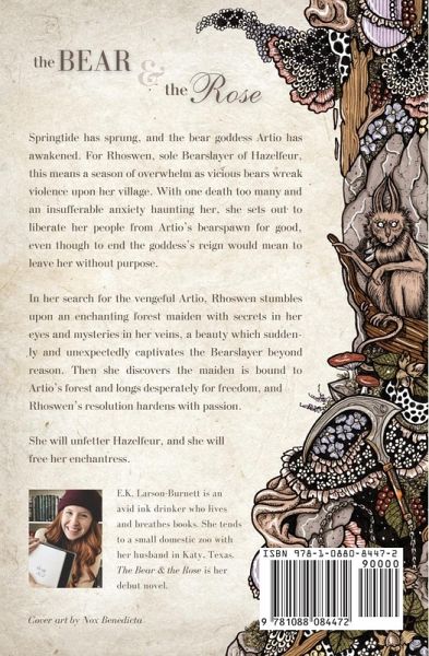 "Inspiring, empowering, and exciting all at once." - Independent Book Review Springtide has sprung, and the bear goddess Artio has awakened. For Rhoswen, sole Bearslayer of Hazelfeur, this means a season of overwhelm as vicious bears wreak violence upon her village. With one death too many and an insufferable anxiety haunting her, she sets out to liberate her people from Artio's bearspawn for good, even though to end the goddess's reign would mean to leave her without purpose. In her search for the vengeful Artio, Rhoswen stumbles upon an enchanting forest maiden with secrets in her eyes and mysteries in her veins, a beauty which suddenly and unexpectedly captivates the Bearslayer beyond reason. Then she discovers the maiden is bound to Artio's forest and longs desperately for freedom, and Rhoswen's resolution hardens with passion. She will unfetter Hazelfeur, and she will free her enchantress. For fans of Katherine Arden's The Bear and the Nightingale (Winternight Trilogy) and Naomi Novik's Spinning Silver, The Bear & the Rose is a tale told in lush prose that readers will find brimming with folklore, adventure, and a sweet sapphic romance. "With beautiful, lyrical prose, fully developed characters, and a rich fantasy world, this is an outstanding debut novel. Pure, wonderful escapism." - Readers' Choice
