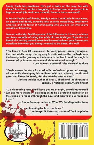 "Sandy Kurtz has problems. He's got a baby on the way, his wife doesn't love him, and he's struggling to find passion or purpose at his big-box retail job. And, once a month, he turns into a werewolf. Join us on the trip. Feel the power of the full moon as it turns you into a carnivore capable of ruling the wilds of rural Michigan. Taste the rich blood of a pulsing animal heart; feel it cascade down your face as you transform into what you always wanted to be. Enter...the wolf"--