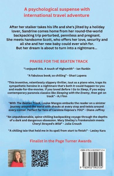 A psychological suspense with international travel adventure After her stalker takes his life and she's jilted by a holiday lover, Sandrine comes home from her round-the-world backpacking trip perturbed, penniless and pregnant. She meets handsome Scott, who offers her love, security and all she and her new baby could ever wish for. But her dream is about to turn into a nightmare... ¿