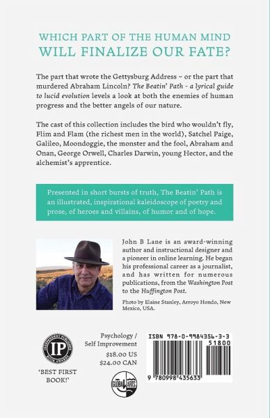 Which part of the human mind will finalize our fate? The part that wrote the Gettysburg Address – or the part that murdered Abraham Lincoln? The Beatin’ Path - a lyrical guide to lucid evolution levels a look at both the enemies of human progress and the better angels of our nature. The cast of this collection includes the bird who wouldn’t fly, Flim and Flam (the richest men in the world), Satchel Paige, Galileo, Moondoggie, the monster and the fool, Abraham and Onan, George Orwell, Charles Darwin, young Hector, and the alchemist’s apprentice. Presented in short bursts of truth, The Beatin’ Path is an illustrated, inspirational kaleidoscope of poetry and prose, of heroes and villains, of humor and of hope.