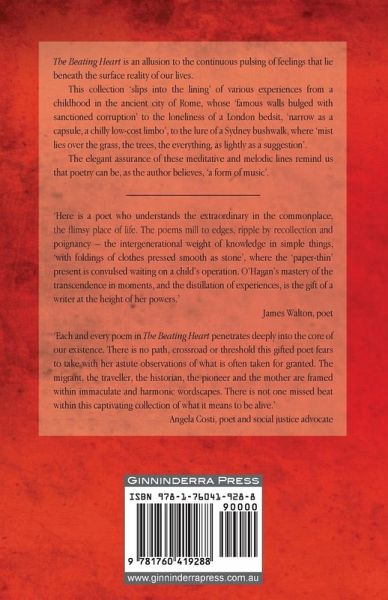 The Beating Heart is an allusion to the continuous pulsing of feelings that lie beneath the surface reality of our lives. This collection 'slips into the lining' of various experiences from a childhood in the ancient city of Rome, whose 'famous walls bulged with sanctioned corruption' to the loneliness of a London bedsit, 'narrow as a capsule, a chilly low-cost limbo', to the lure of a Sydney bushwalk, where 'mist lies over the grass, the trees, the everything, as lightly as a suggestion'. The elegant assurance of these meditative and melodic lines remind us that poetry can be, as the author believes, 'a form of music'.'Here is a poet who understands the extraordinary in the commonplace, the flimsy place of life. The poems mill to edges, ripple by recollection and poignancy - the intergenerational weight of knowledge in simple things, 'with foldings of clothes pressed smooth as stone', where the 'paper-hin' present is convulsed waiting on a child's operation. O'Hagan's mastery of the transcendence in moments, and the distillation of experiences, is the gift of a writer at the height of her powers.' - James Walton, poet'Each and every poem in The Beating Heart penetrates deeply into the core of our existence. There is no path, crossroad or threshold this gifted poet fears to take with her astute observations of what is often taken for granted. The migrant, the traveller, the historian, the pioneer and the mother are framed within immaculate and harmonic wordscapes. There is not one missed beat within this captivating collection of what it means to be alive.' - Angela Costi, poet and social justice advocate