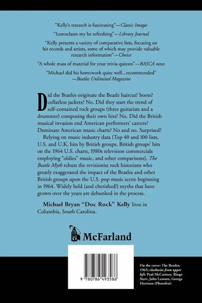 Did the Beatles originate the Beatle haircut? boots? collarless jackets? No. Did they start the trend of self-contained rock groups (three guitarists and a drummer) composing their own hits? No. Did the British musical invasion end American performers' careers? Dominate American music charts? No and no. Surprised? Relying on music industry data (Top 40 and 100 lists, U.S. and U.K. hits by British groups, British groups' hits on the 1964 U.S. charts, 1980s television commercials employing ""oldies"" music, and other comparisons), The Beatle Myth rebuts the revisionist rock historians who greatly exaggerated the impact of the Beatles and other British groups upon the U.S. pop music scene beginning in 1964. Widely held (and cherished!) myths that have grown over the years are debunked in the process.