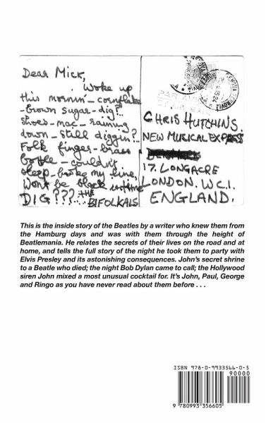 THE postcard on the cover of this book says it all. The card was written by John Lennon and sent to his friend Chris Hutchins. On the card’s photograph of the Beatles, John had drawn a fifth member – the founder of the group Stuart Sutcliffe who John went on to describe as the best friend he ever had. This is the kind of confidence John, Paul George and Ringo shared with writer Hutchins who they befriended in their days as ‘unknowns’ in Hamburg. He shared their adventures during the heady days of Beatlemania; he was with them during their American tours in the 60s, sharing their euphoria and…mehr