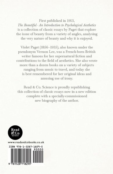 Violet Paget (1856¿1935), also known under the pseudonym Vernon Lee, was a French-born British writer famous for her supernatural fiction and contributions to the field of aesthetics. She also wrote more than a dozen books on a variety of subjects ranging from music to travel, and today she is best remembered for her original ideas and amusing use of irony. First published in 1913, ¿The Beautiful - An Introduction to Psychological Aesthetics¿ is a collection of classic essays by Paget that explore the issue of beauty from a variety of angles, analysing the very nature of beauty and why it is enjoyed. Contents include: ¿The Adjective 'Beautiful'¿, ¿Contemplative Satisfaction¿, ¿Aspects Versus Things¿, ¿Sensations¿, ¿Perception of Relations¿, ¿Elements of Shape¿, ¿Facility and Difficulty of Grasping¿, ¿Subject and Object¿, ¿Empathy¿, ¿The Movement of Lines¿, ¿The Character of Shapes¿, etc. Other notable works by this author include: ¿The Prince of the Hundred Soups: A Puppet Show in Narrative¿ (1883), ¿The Countess of Albany¿ (1884), and ¿Miss Brown¿ (1884). Read & Co. Science is proudly republishing this collection of classic essays now in a new edition complete with a specially-commissioned new biography of the author.