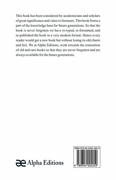 This book has been considered by academicians and scholars of great significance and value to literature. This book forms a part of the knowledge base for future generations. So that the book is never forgotten we have re-typed, re-formatted, and re-published the book in a very modern format. Hence every reader would get a new book but without losing its old charm and feel. We at Alpha Editions, work towards the restoration of old and rare books so that they are never forgotten and are always available for the future generations.
