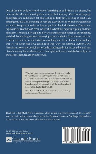 One of the most widely accepted ways of describing an addiction is as a disease, but do we realize what we are saying when we describe it that way? Our current language and approach to addiction is not only lacking in depth but is keeping us blind to an amazing way that God is working in each and every one of us. What if our addictions are not broken parts of us that we have to get rid of, but invitations from God to new depth and transformation? When we are able to hold this experience gently and look at it anew, it reveals a new depth to how we can understand ourselves, our suffering, and God. For too long we have been trying to treat addiction like a disease, and tear it out by the root, but we are invited to something more in our humanity; something that we will never find if we continue to wish away our suffering. Author David Tremaine explores the possibilities of understanding addiction not as a diseased part of our humanity, but as a blessed part of our spiritual journey, and sheds new light on this deeply engrained experience of God.
