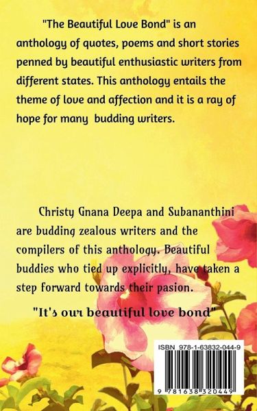THE BEAUTIFUL LOVE BOND is an anthology of poems, quotes and short stories on the theme love and affection towards one another. ""Love yourself, Love others, Tranform your life"" . This anthology is a ray of hope for many budding writers.